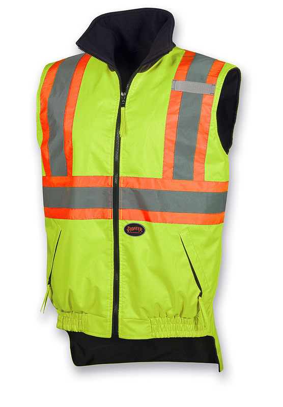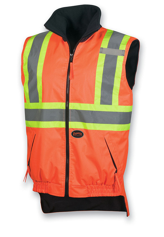 •300 denier oxford polyester•CSA Z96-09 Class 2 Level 2 •3M® Scotchlite™ reflective tape •Reversible to become a black fleece vest •Long back weather-protective tail •Radio phone clip strap •Full front reversible zipper •Invisible embroidery access zipper •2 zipper pockets •2 slash pockets •Sizes: S-3XL •AVAILABLE COLOURS: Hi-Viz Yellow (6699) Hi-Viz Orange (6698) |